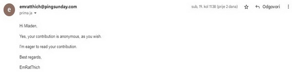 U životu slučaj (sudbina) nema previše utjecaja. Može se desiti jedan ili čak slijed nesretnih događaja, koji će Vas teško oštetiti i baciti nazad, ali, svi će na kraju završiti na mjestima koja zaslužuju. Nezavisno od toga što i koliko se priča, djela se na kraju vrednuju. Isto je i za ovdje prisutna 882 bloga i 1.5 milijuna klikova, jer sve je to posljedica rada i znanja. Nema prevare (fakea), kada se ovdje konzultira i najveći EmRatThich. Jer, prema zadnjem mailu, od prije 2 dana, možda i on, francuski Vijetnamac, “malo” prepisuje. Otkud pamet ovdje? Među ostalim, uz pomoć prijatelja, a takav je naš profesionalni igrač i (odnedavno) trener STK Zagreb Tomislav Kolarek.