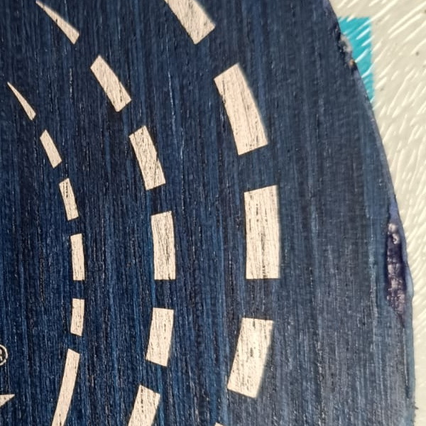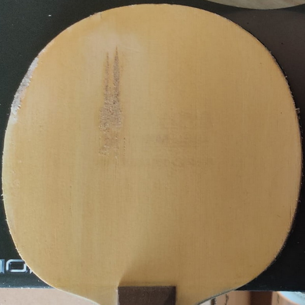 Gornje drvo se moglo popraviti zamjenom cijelog furnira, ali zbog rijetkosti hinokija (konkretno radi se od drvu Nittaku Shake Defence), popravljeno je metodom zapunjavanja piljevinom.