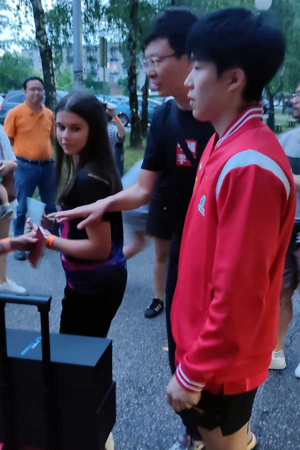 Kako je bilo? Stolni tenis koji se igrao bio je vrhunski, “za prste polizati”. Moram se vratiti na davno izraženu tvrdnju. Možda nogomet možete bolje vidjeti na TV-u ili monitoru/mobu, nego iz 17. reda nekog stadiona, kod stolnog tenisa je to upravo obrnuto. Niti jedan ekran ne može zamijeniti gledanje uživo. U petak je bilo još dosta naših navijača, kada je ulaz bio gratis, ali zadnja 2 dana, od 300 gledatelja, polovica su bili Kinezi (ja na žalost nisam, već sam se na gornjoj fotki samo dobro maskirao). Najbolje su ženske kineske fan grupe koje prate igrače, sjedio sam kraj Kineskinja (max 18 godina), koje prate Wang Chuqina, curetak ispred mene pozorno je snimao svaki pokret Fan Zhendonga i tipkao na mandarinskom po mobitelu. Ok, ako igrači već nisu puni para, bar imaju žena “na bacanje” (seksizam autora)!